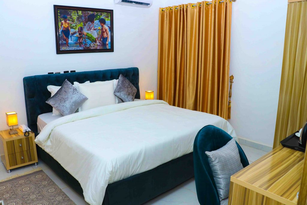Exclusive Duplex is the most luxurious and spacious suite with 4 bedrooms, we have which highlights why we are considered the best hotel in Abuja. Everything is thought of. From the choice of mattress (which almost guarantees sweet dreams) on the custom-made king-size bed to the iconic designer reading lamps.